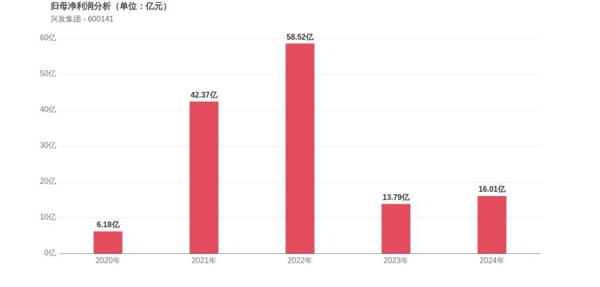 利润角度分析,2020年兴发集团实现归母净利润6.18亿元,2024年16.01亿元。利润波动更为剧烈,2021年大幅增长582.05%,2023年则大幅下滑76.44%,2024年重新回到增长轨道。
