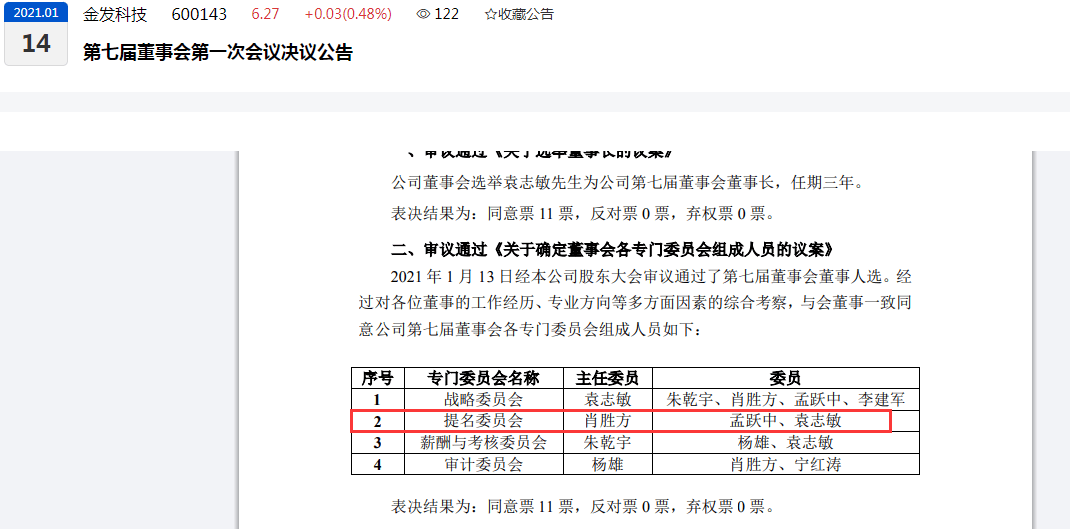 资料显示,金发科技第七届董事会提名委员会中,委员包括袁志敏。