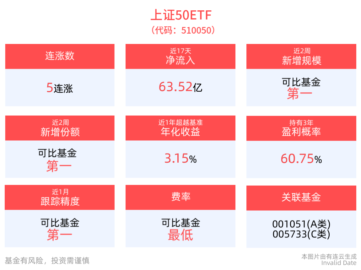 费率方面,上证50ETF管理费率为0.15%,托管费率为0.05%,费率在可比基金中最低。