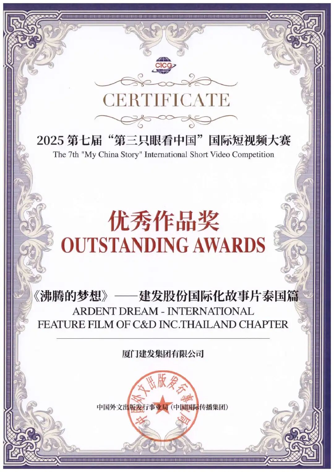 本届大赛面向各级政府宣传部门、国内外媒体、“走出去”中国企业等,共征集作品45880部,覆盖五大洲128个国家以及26个语种,最终评选出85部获奖作品。此次获奖的建发股份国际化故事片泰国篇,基于公司真实业务案例创作剧本,从全球共通的情感出发,展现公司国际化业务为各国民众生活带来的变化,传递“中国式商社,全球化建发”品牌主张,让国内外观众更好地理解建发股份供应链业务价值。影片发布后,有效促进了公司海外业务拓展与人才招募,为中国品牌出海提供创新传播范例。