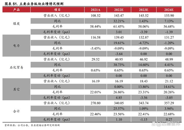 1)煤炭:预计 2022-2024 年的毛利率分别为 61.45%/58.06%/56.68%;