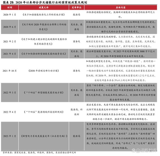 近年来我国发布多项涉及储能行业的政策规划,从科技进步、装机规模、市场形态等多方面大力推动储能行业持续发展。