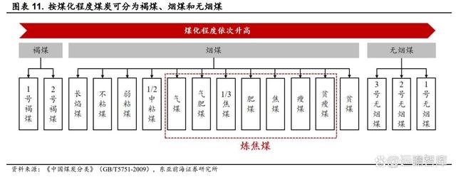 其中烟煤包括弱粘煤、中粘煤、气煤、气肥煤、肥煤、1/3 焦煤等 12 小类、褐煤和无烟煤则分别包括 2 小类和 3 小类。
