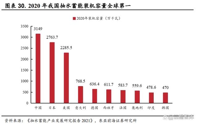 2020 年,我国传统的抽水蓄能装机容量全球第一。