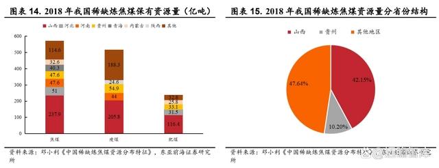 按此定义,据邓小利《中国稀缺炼焦煤资源分布特征》,截至 2018 年,我国稀缺炼焦煤资源保有量达 1328.8亿吨,其中焦煤、瘦煤和肥煤保有量分别为 571.6、517.6 和 239.6 亿吨。