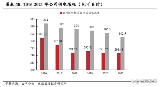 公司在运燃煤机组均为低能耗机组,2021 年公司平均供电煤耗仅为 291.48 克/千瓦时,相比于全国 6000 千瓦及以上电厂平均供电煤耗低 11.02 克/千瓦时,全年可节约标煤约 30 万吨。