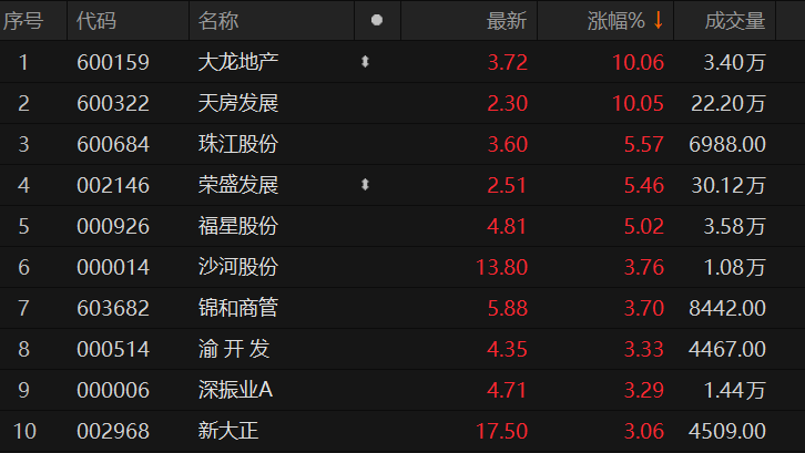 7月24日,房地产板块开盘表现抢眼,大龙地产3连板,天房发展2连板,珠江股份、荣盛发展、沙河股份等集体高开。