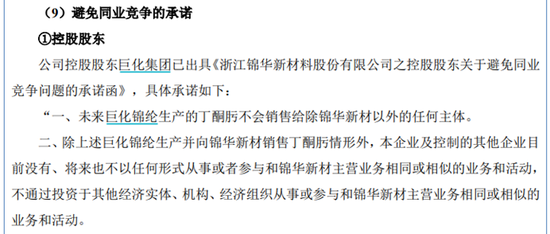 此外还值得关注的是,锦华新材还在招股书针对“避免同业竞争的承诺”中提到:未来巨化锦纶生产的丁酮肟不会销售给除锦华新材以外的任何主体。但另一方面,巨化股份在2024年年报中披露,旗下涉及石化行业产品中包含6万吨/年丁酮肟产能,而锦华新材2024年采购丁酮肟的数量仅为4000吨左右,尚不足巨化股份旗下丁酮肟产能的十分之一。