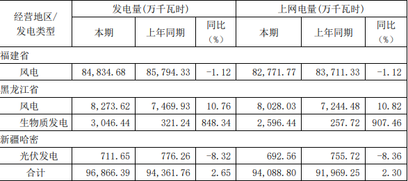 中闽能源4月17日公告,公司一季度下属各项目累计完成发电量9.69亿千瓦时,比去年同期9.44亿千瓦时增长2.65%;累计完成上网电量9.41亿千瓦时,比去年同期9.2亿千瓦时增长2.3%。