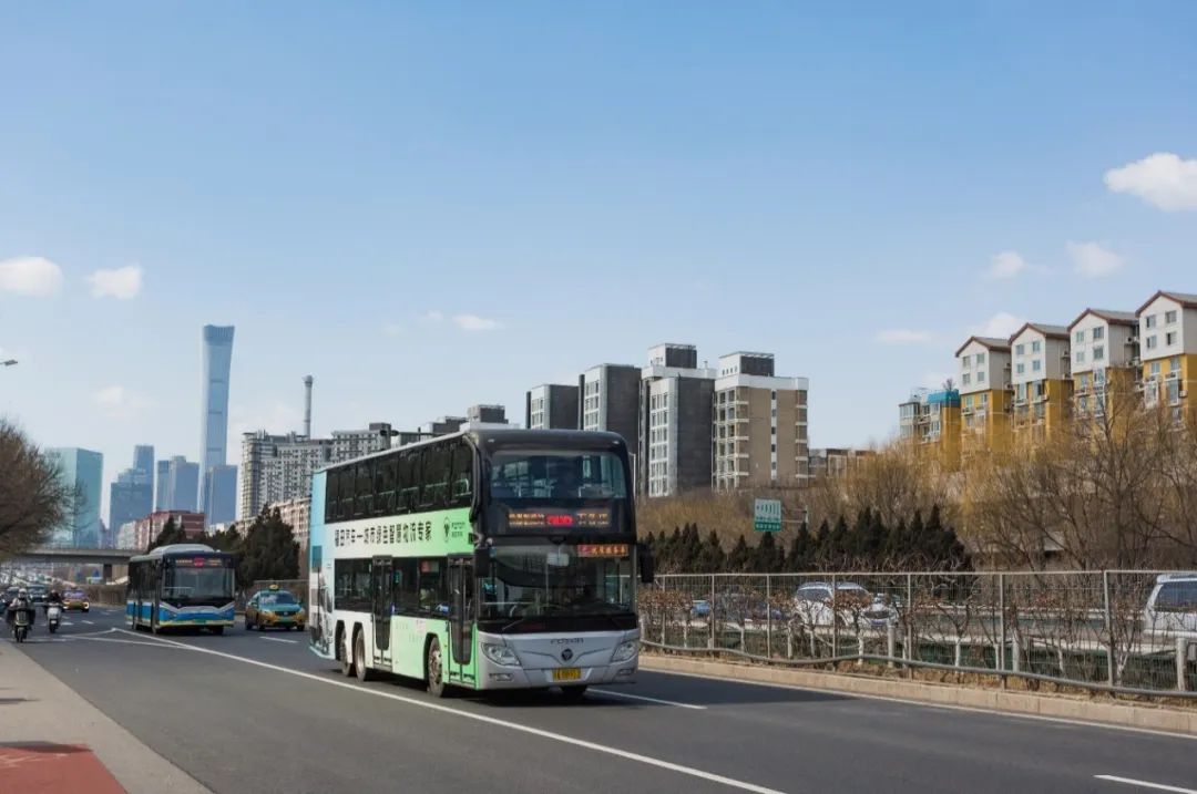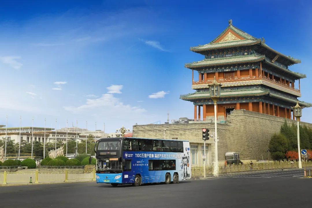 在北京市繁忙喧嚣的都市车流中,福田汽车双层巴士穿梭于前门、国贸、西客站、鸟巢等地标性建筑之间。这些双层巴士行驶在京城夜景线、古都文化线、奥运精神线、现代都市线、皇家园林线等丰富多样的观光路线,承载着北京市民的美好出行。