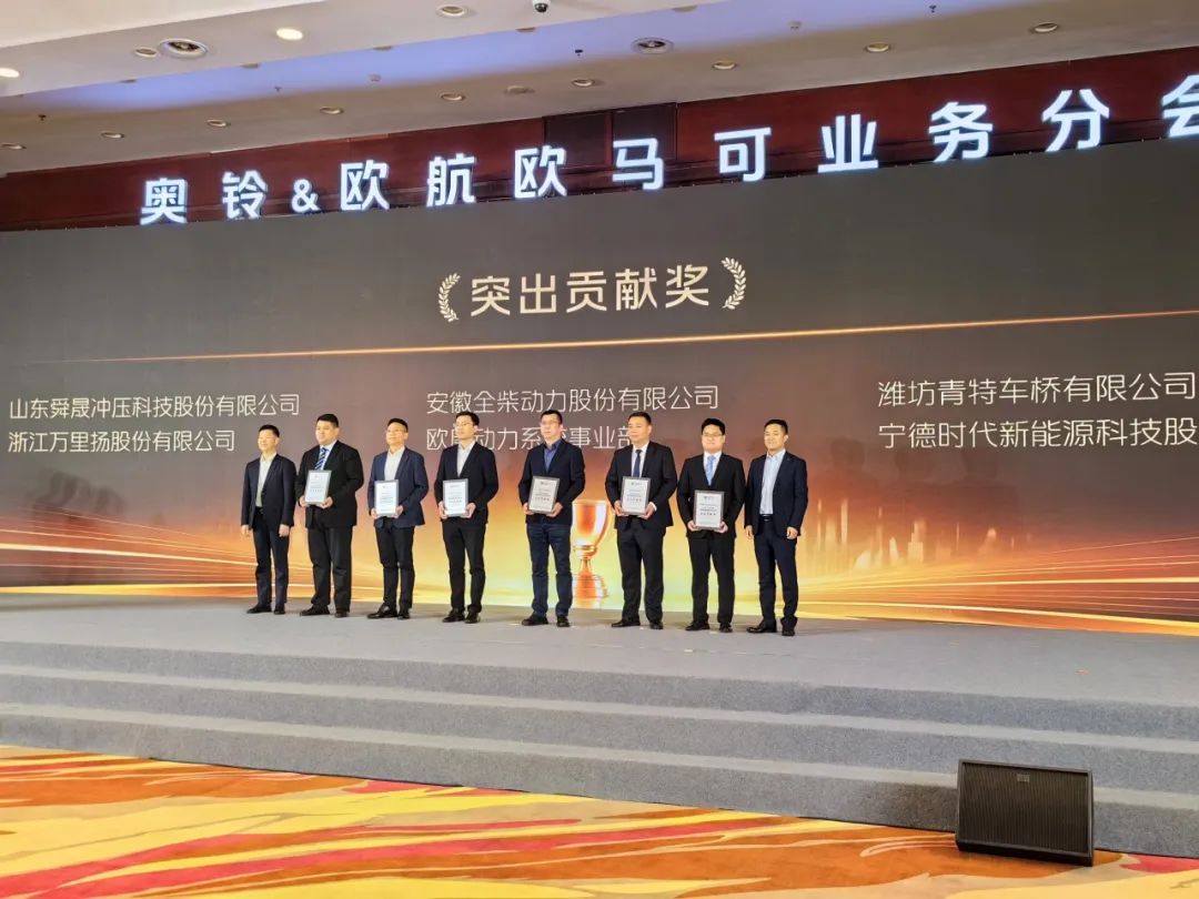 大会还为表现优异的合作伙伴颁奖,万里扬荣膺“福田汽车合作共赢奖”“福田汽车优秀供应商”“奥铃欧航欧马可突出贡献奖”,同时王东荣获“时代事业部最佳协作奖”。