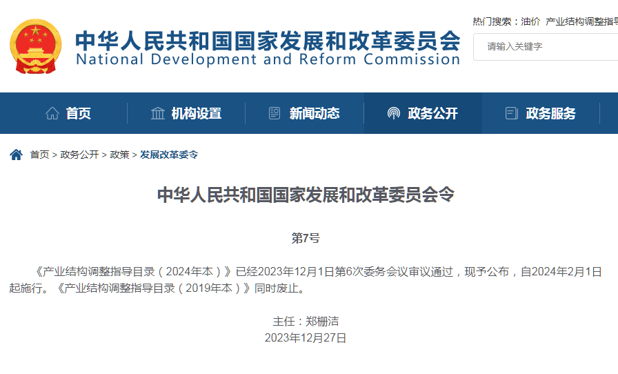 国家发改委相关负责人表示,产业结构调整指导目录是引导社会投资方向、政府管理投资项目,制定实施财税、信贷、土地、进出口等政策的重要依据。目录2024年本的政策导向是——推动制造业高端化、智能化、绿色化,巩固优势产业领先地位,在关系安全发展的领域加快补齐短板,构建优质高效的服务业新体系。生态优先、绿色发展,正成为企业可持续发展共识。