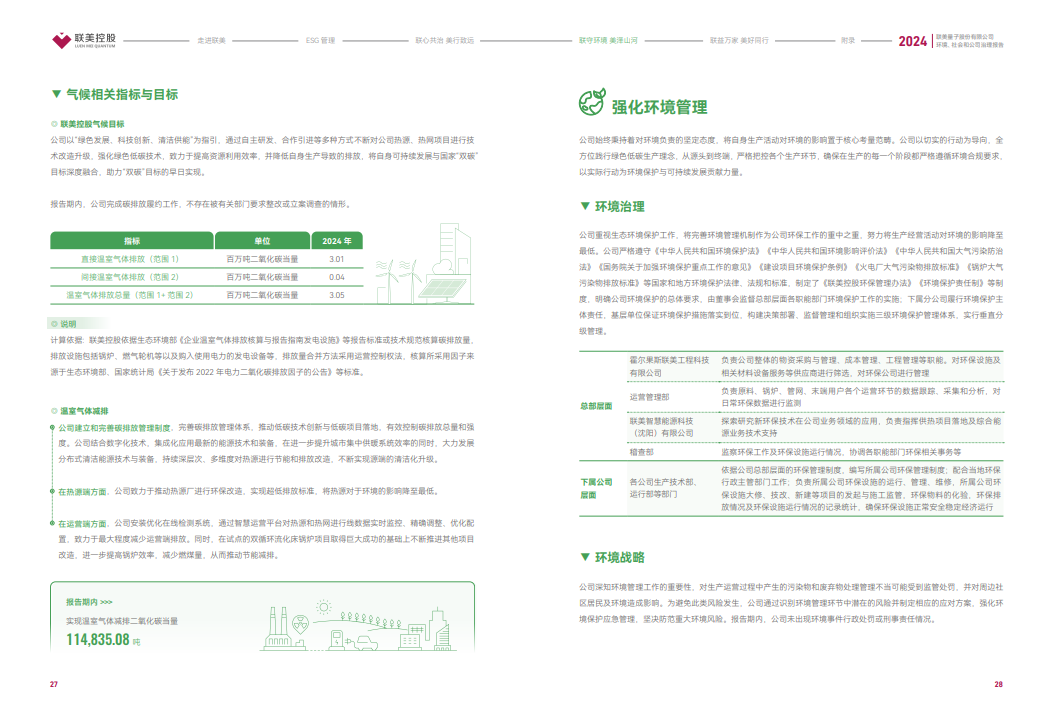 报告显示,2024年联美控股实现温室气体减排二氧化碳当量11.48万吨,清洁供热率连续多年保持100%,成为行业绿色转型标杆。