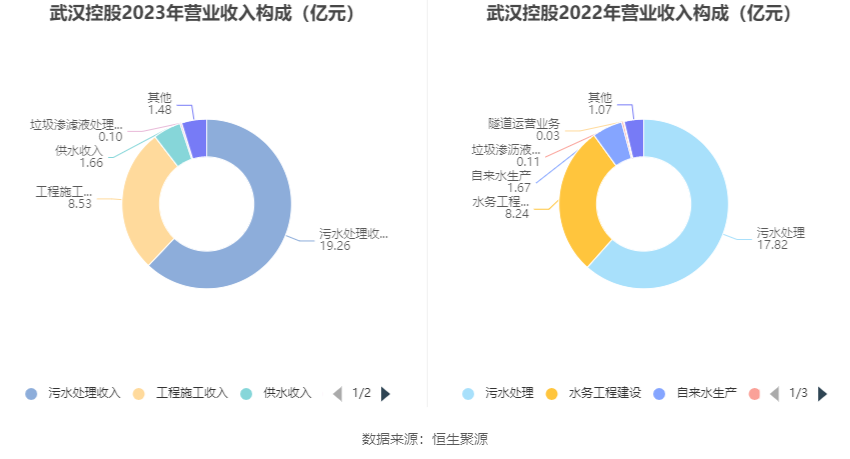 分产品看,污水处理收入、工程施工收入、供水收入2023年毛利率分别为25.50%、4.23%、-33.56%。