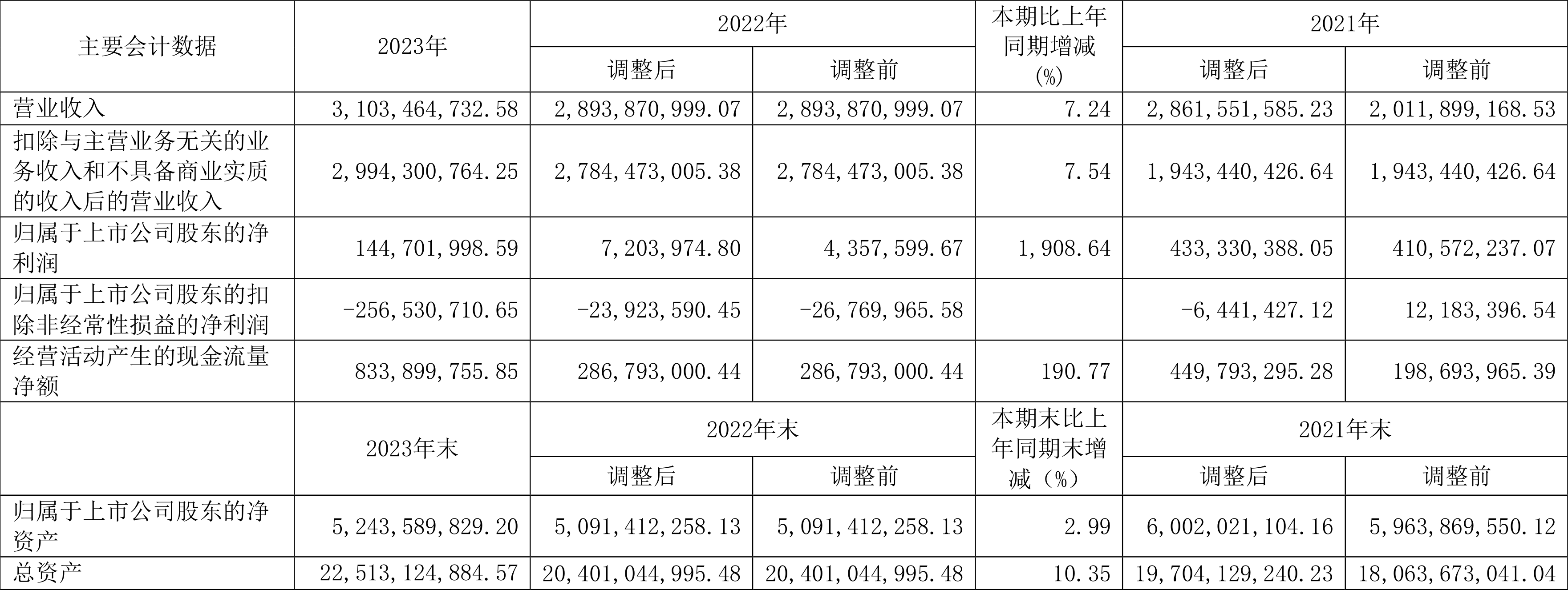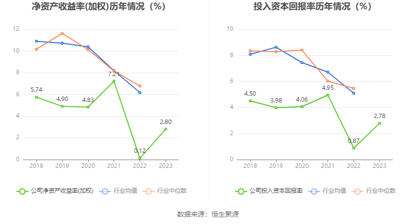 数据显示,2023年公司加权平均净资产收益率为2.80%,较上年同期增长2.68个百分点;公司2023年投入资本回报率为2.78%,较上年同期增长1.91个百分点。