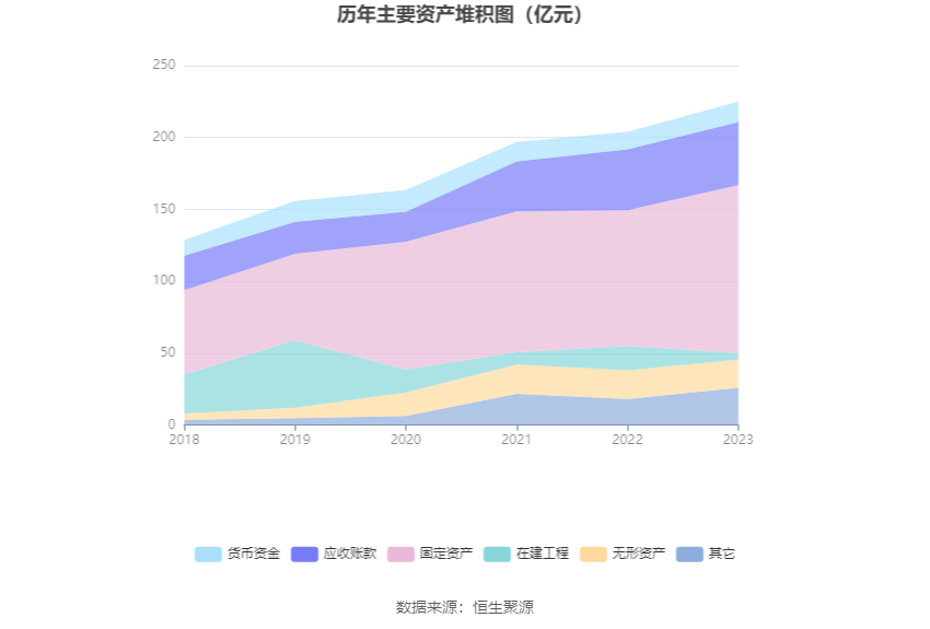 资产重大变化方面,截至2023年年末,公司在建工程较上年末减少72.99%,占公司总资产比重下降6.25个百分点;固定资产较上年末增加23.58%,占公司总资产比重上升5.55个百分点;其他应收款(含利息和股利)较上年末增加122.31%,占公司总资产比重上升2.20个百分点;应收账款较上年末增加4.10%,占公司总资产比重下降1.18个百分点。