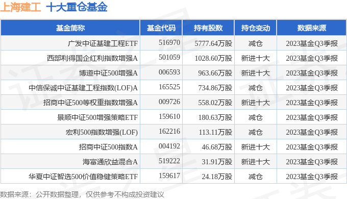 重仓上海建工的前十大基金见下表: