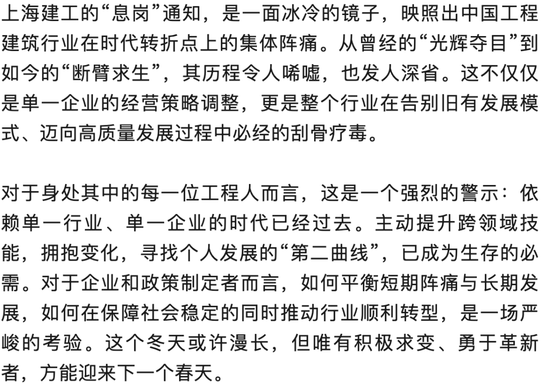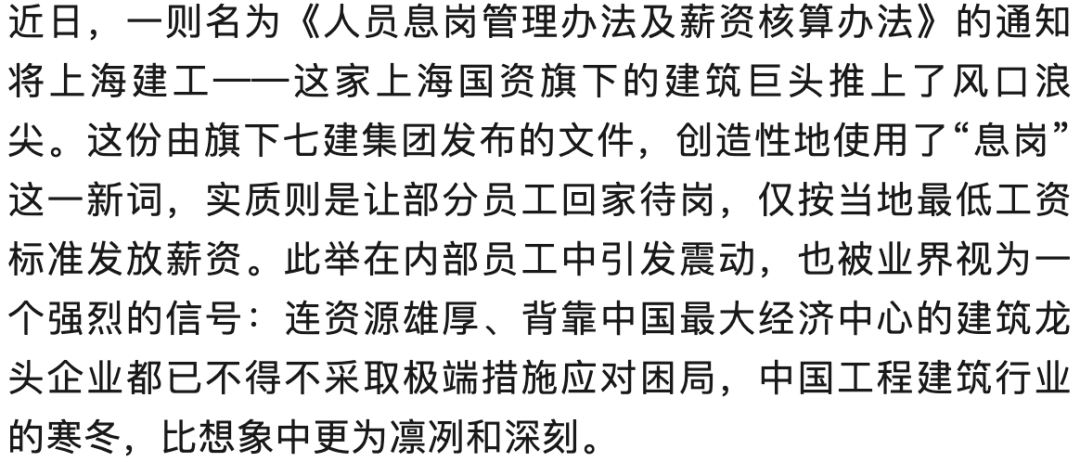 上海建工发布“息岗”通知:昔日行业巨头的转身与阵痛,折射中国工程行业严峻寒冬