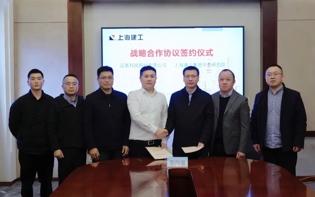 12月16日下午, 品茗科技 与 上海建工 集团中央研究院在上海正式签署战略合作协议, 品茗科技 董事、副总裁陈飞军与 上海建工 集团中央研究院院长张铭出席签约仪式。双方将在建筑数字化与人工智能技术研发方面深化合作,共同推动智能建造的落地应用。