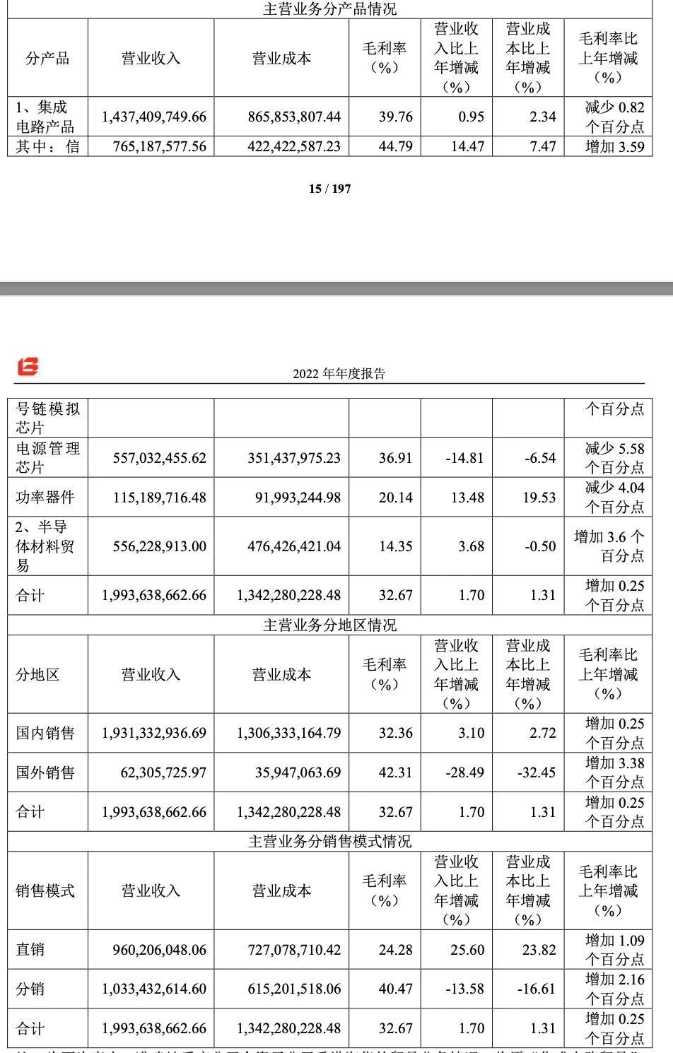 对于上述数据变化,上海贝岭董事、总经理杨琨解释,上海贝岭营收分区域来看,海外销售比例只占了一小部分(2022年约为3.1%),直接销售客户以国内市场为主。不过也有很多产品,比如电表芯片虽然在国内销售,但是终端产品是销往海外,这部分需求增长很快。其次功率器件库存变化,他指出,2022年上半年以前,这一市场持续了长达两年的产能紧缺,期间整个行业库存都处于比较低的水平。到了2022年下半年,市场需求和产能恢复到相对均衡的状态,上海贝岭也基本回到了正常经营的库存水平。因此虽然看起来功率器件的库存水平同比增幅较大,但其实只是回到了正常状态。