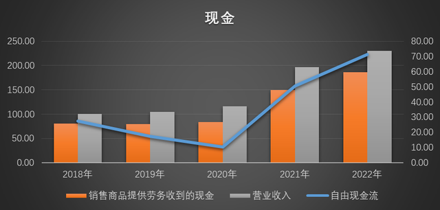 (四)销售商品、提供劳务收到的现金5年复合增长率18.36%;营业收入5年复合增长率18.11%;自由现金流5年来复合增长率20.97%。