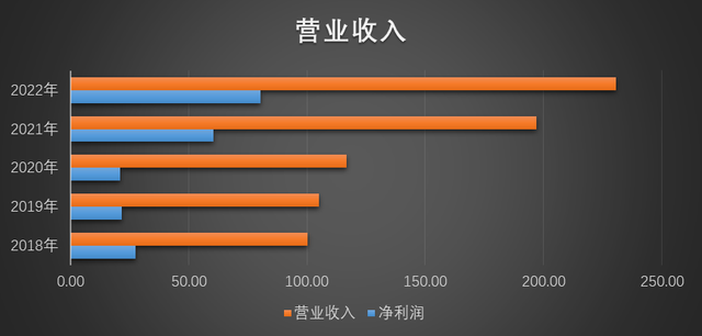 (一)营业收入保持继续增长,2022年总营收为230.56亿(中位数116.66,均值149.91),较2021年提升17.00%,整体毛利率40.52%(中位数40.52%,均值40.04%),比2021年降低10.57%,毛利增长率2022年4.63%(中位数5.93%,均值26.69%);公司具有较强的技术优势。