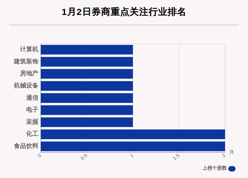 从券商对行业的关注度来看,券商关注个股数居前的行业分别是食品饮料、化工、采掘。