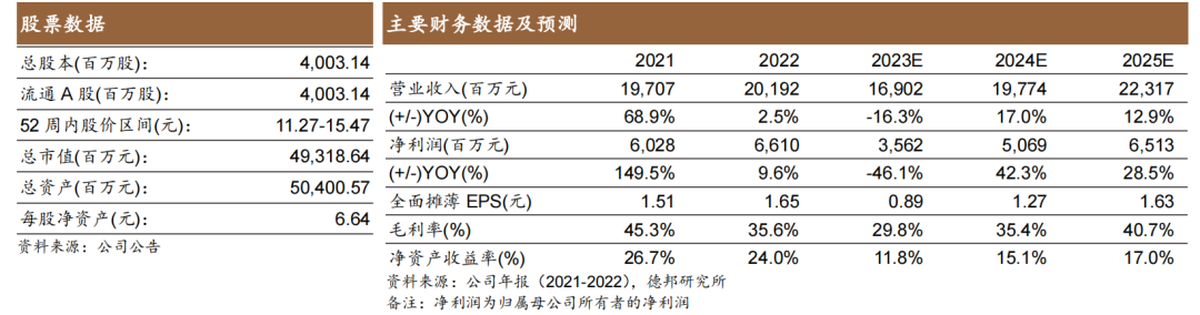 2023年10月23日,公司发布2023年第三季度报告,2023年前三季度公司实现营收约114.25亿元,同比-29.04%,实现归母净利润约26.74亿元,同比-51.54%,实现扣非归母净利润约16.24亿元,同比-54.84%。单季度来看,23Q3公司实现营收约35.96亿元,同比-14.23%(降幅收窄24.41pct),环比-13.53%,实现归母净利润约6.11亿元,同比-53.41%(降幅扩大1.60pct),环比-46.50%,实现扣非归母净利润约3.54亿元,同比-53.83%(降幅扩大9.78pct),环比-54.40%。