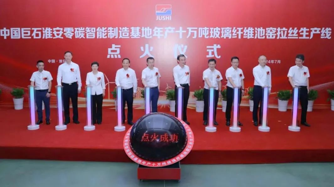 7月26日,中国巨石淮安零碳智能制造基地第二条玻纤生产线胜利点火。淮安市委书记、市人大常委会主任史志军,淮安市委副书记、市长顾坤,中国巨石党委书记、总裁杨国明等领导共同为池窑点火。