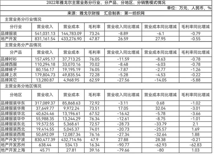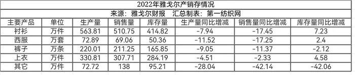 2022年,国内服装行业总体呈现持续放缓的运行态势,内销市场恢复缓慢,叠加客流减少、物流受阻等因素,雅戈尔时尚板块的整体经营面临较大压力。一方面,客流减少对线下销售造成不利影响,虽然公司及时调整经营策略,强化营销创新和会员服务的力度,但全年线下销售收入仍下降11.80%;一方面,公司在逆势中坚持推进子品牌独立运营,报告期内,子品牌累计撤出集合店厅439家,独立开店仅8家;另一方面,公司并购合作的新品牌仍处于培育期,产生了一定的经营亏损。