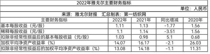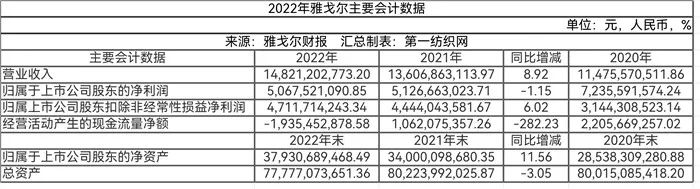 雅戈尔集团股份有限公司(以下简称“雅戈尔”)今天(4月28日)晚间发布2022年年报,报告期内,公司完成营业收入148.21亿元,同比增长8.92%;实现归属于上市公司股东的净利润50.67亿元,同比下降1.15%;实现归属于上市公司股东的扣除非经常性损益的净利润47.11亿元,同比增长6.02%。