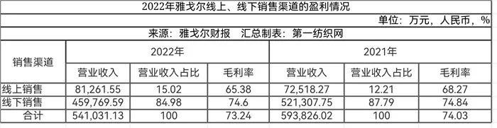 财报显示,雅戈尔构建了覆盖全国且规模庞大的营销网络体系,涵盖自营专卖店、购物中心、商场网点、特许加盟、奥莱、团购等六大线下渠道,以及电商、微商城两大线上渠道,直营渠道的销售收入占比达到95%以上。报告期内,公司借力传统渠道优势,推进时尚体验馆建设,探索线上线下深度融合的新商业模式。2022年,雅戈尔线上全域GMV继续增长23%至12.8亿元,在主流电商平台位列商务男装第一,时尚体验馆直播间成为抖音电商云零售标杆。