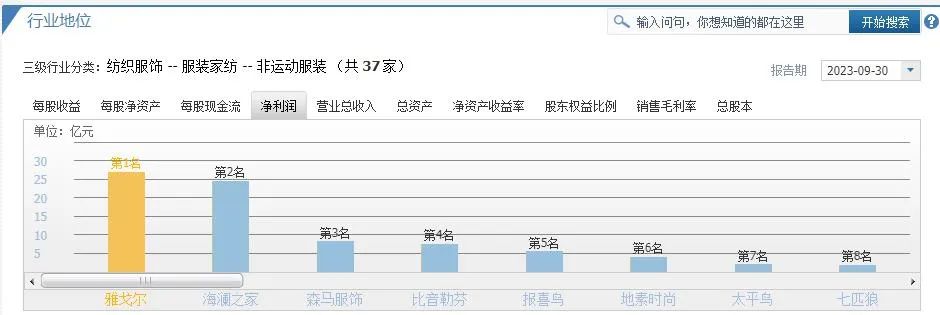 如此豪气,乍看主要在于不缺钱。截至2023年前三季,雅戈尔净利虽下降35%,仍达26.93亿元,同花顺数据显示净利规模高居行业第一。
