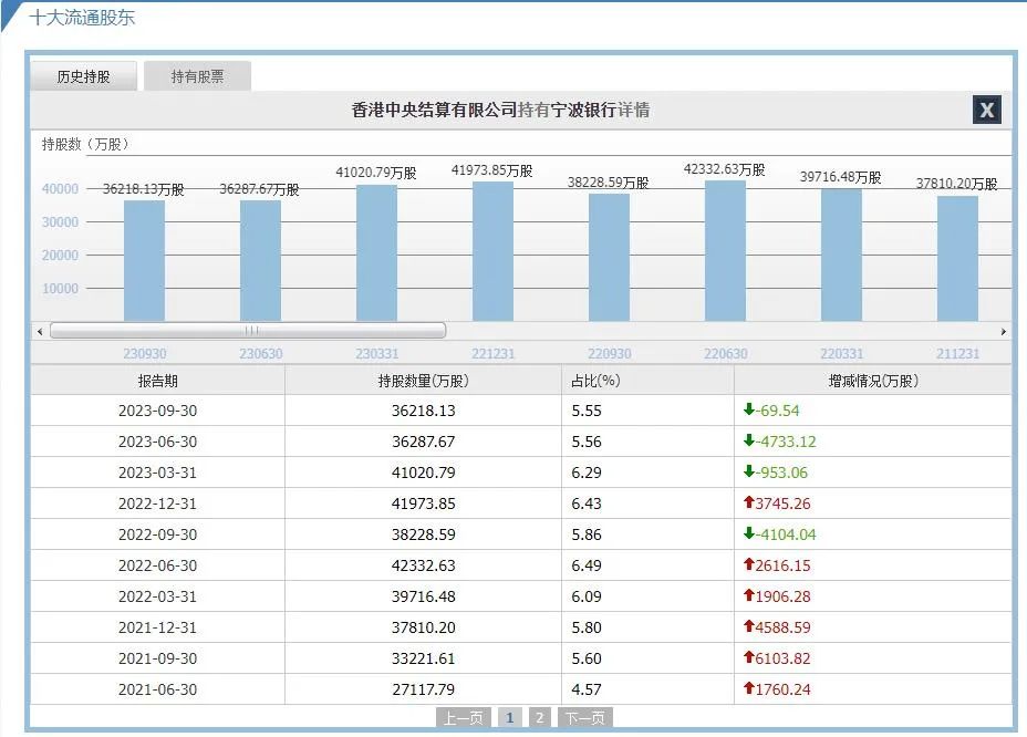 玩味的是,宁波银行另一大股东香港中央结算有限公司年内却持续减持。3月31日至9月30日累计减持4802.66万股,对应持股比由6.29%降至5.55%。