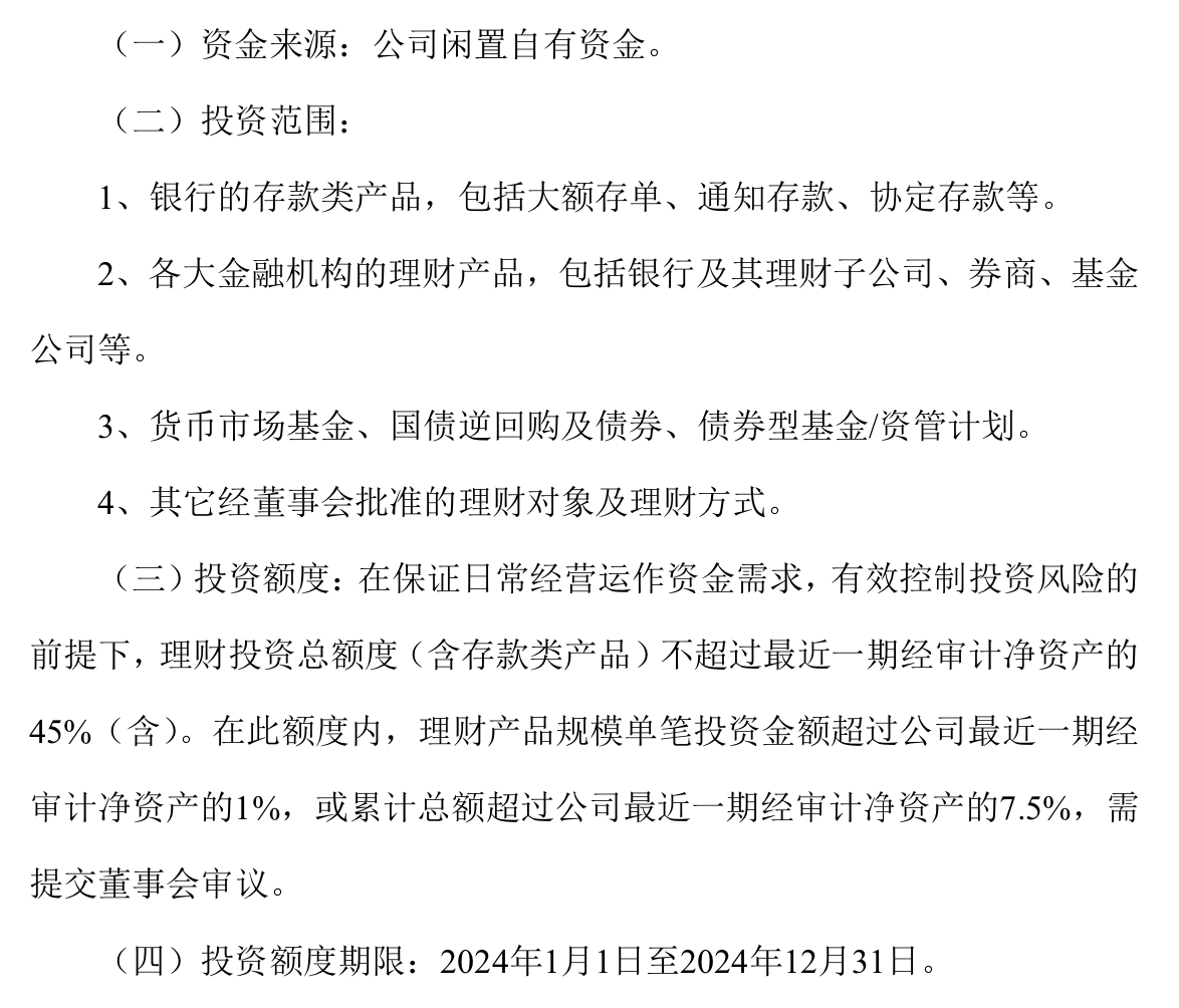 不过,除开二级市场外,云南白药仍然拟定了2024年的理财投资范围、额度等,范围包括银行的存款类产品、各大金融机构的理财产品、货币市场基金、国债逆回购及债券、债券型基金/资管计划等等。