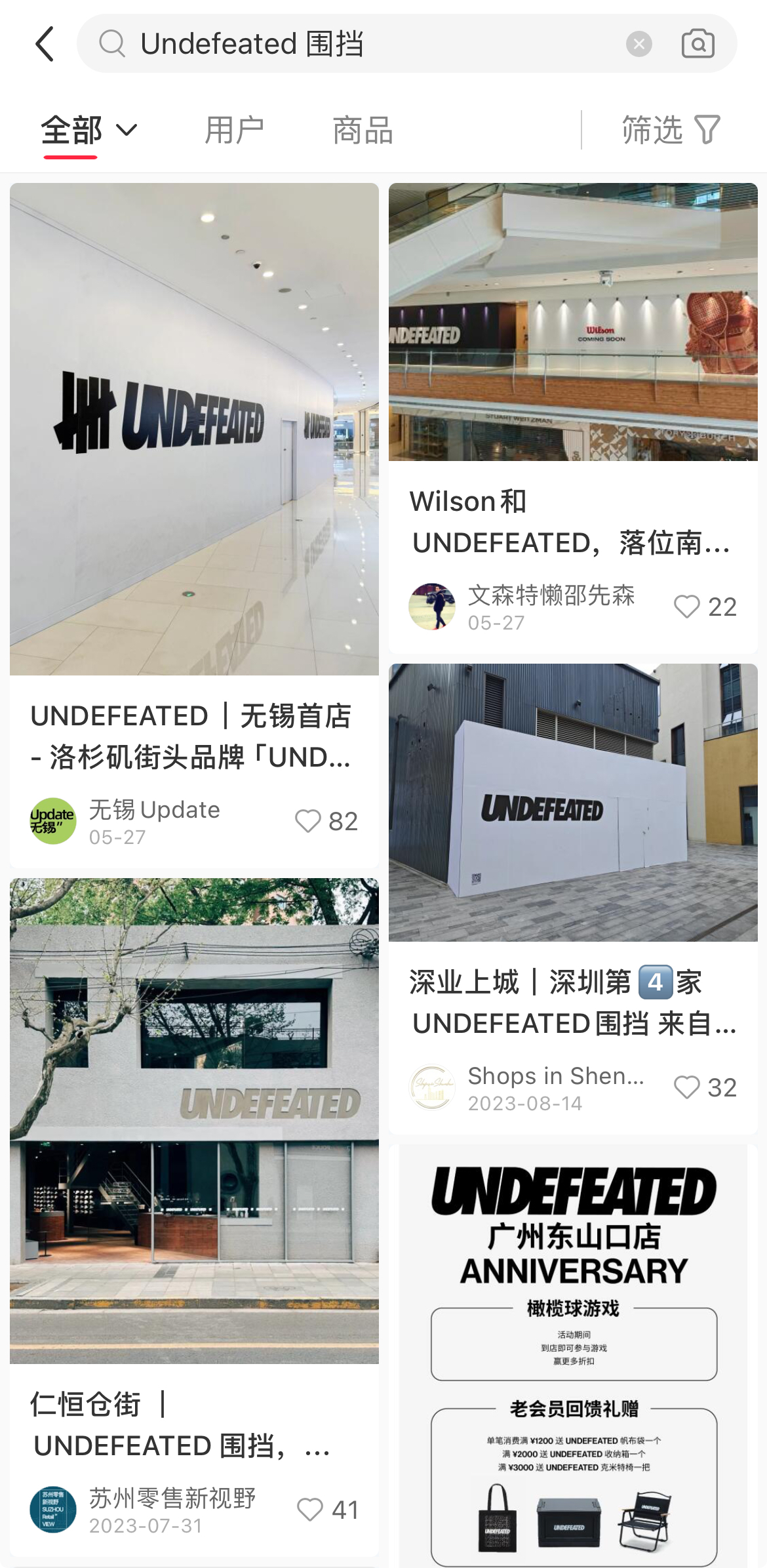 雅戈尔集团于2021年完成对持undefeated的投资。雅戈尔集团收购了其40%的股权,并成立了大中华区公司。从目前的选址来看,雅戈尔集团试图保持undefeated高端潮奢的定位,入驻商圈不乏一线城市的高档潮流商圈,如北京的三里屯太古里和王府中环,也有上述提到的二线城市的高档商圈。