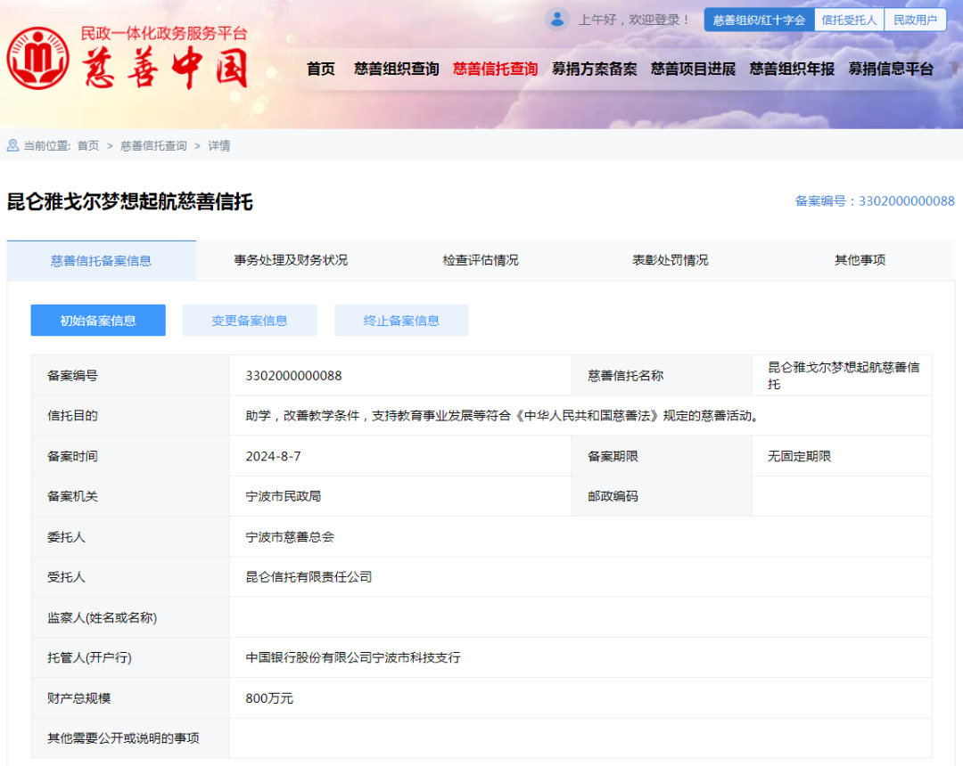 近日,昆仑信托联合知名企业雅戈尔集团发起设立了昆仑雅戈尔梦想起航慈善信托,并在中国民政部“慈善中国”成功备案,初始备案规模800万元。这是雅戈尔集团首次以慈善信托的模式投身慈善公益事业。
