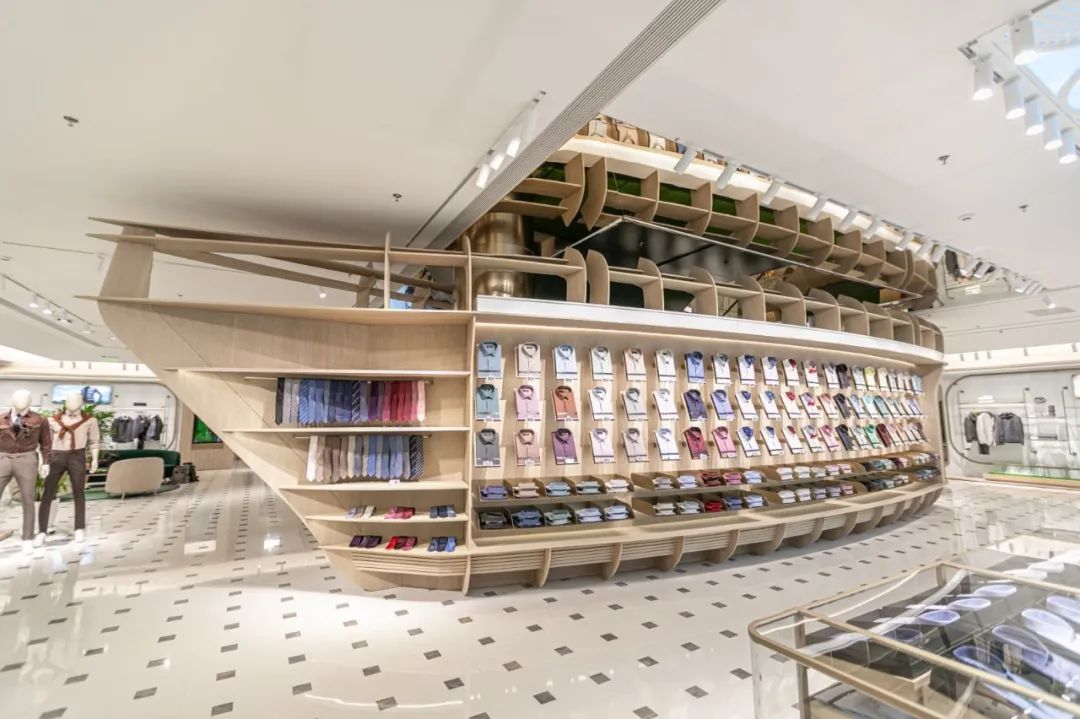 因此,武汉时尚体验馆以“时尚之船”为设计概念,把整个空间构想成一艘时尚巨轮,每个陈列单元则是远望的舷窗,赋予动态与探索的意象。