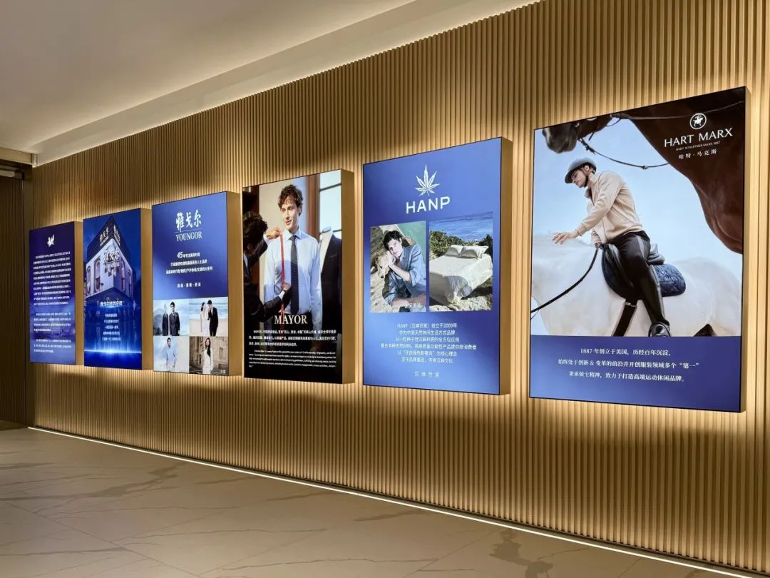 馆内入驻雅戈尔旗下四大品牌:主品牌雅戈尔以商务装为主体,开发有婚庆、休闲等系列产品;MAYOR品牌则以高端产品、高级定制服务高雅成功人士;HART MARX是秉承骑士精神的高端运动休闲品牌;HANP(汉麻世家)崇尚健康、环保、自然的生活方式。四大品牌风格不尽相同,满足不同人群、不同个性和不同场景的服装需求。