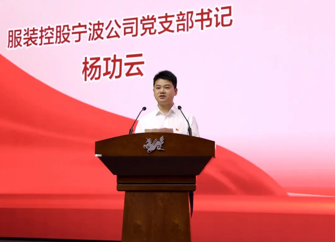 服装控股宁波公司党支部书记杨功云代表“先进党支部”进行发言。