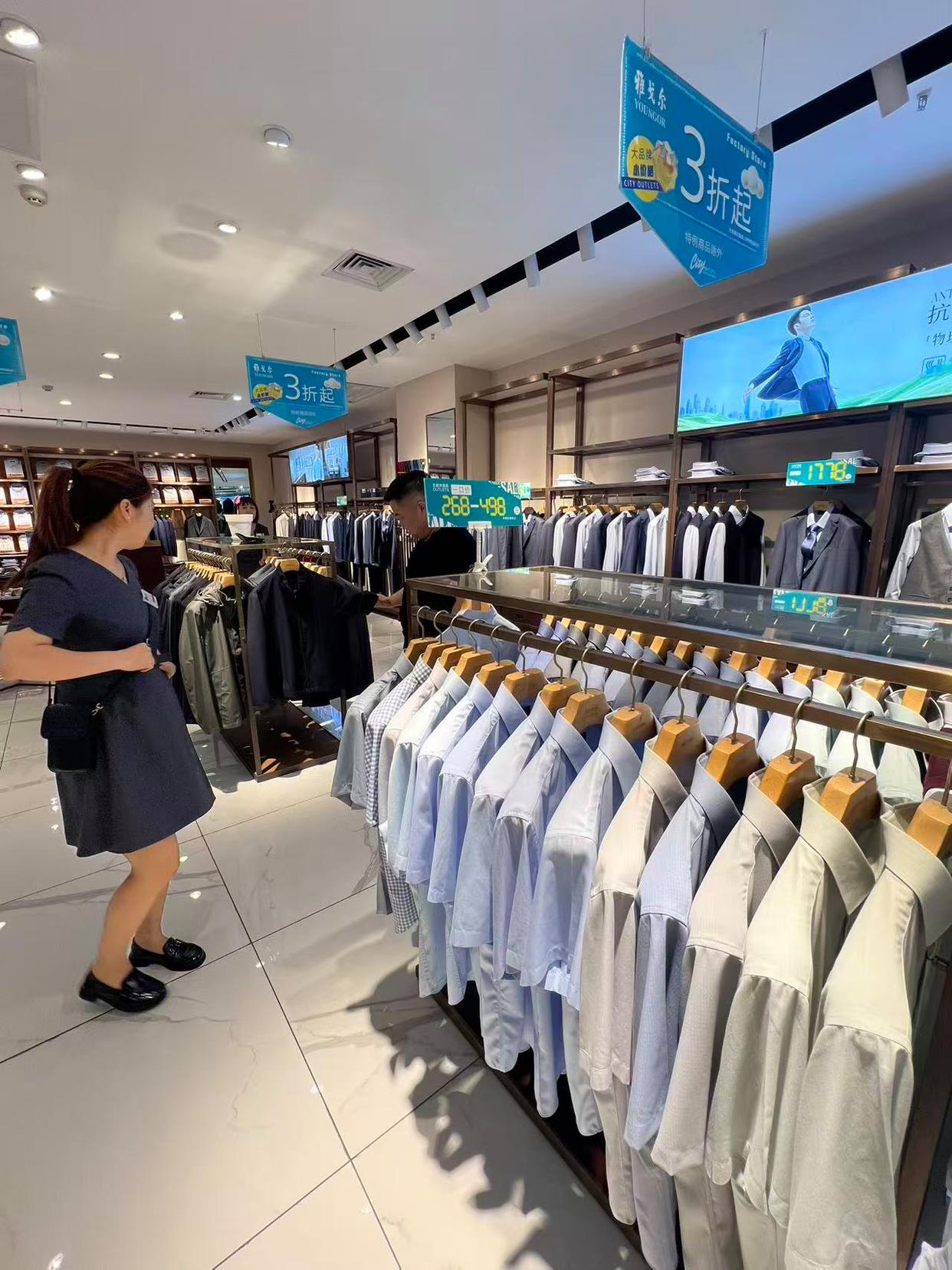 当天晚上7点多,记者又来到位于郑州市中原区锦艺城王府井的雅戈尔专柜,店内只有一位男顾客在选购,询问了价格后,很快就离开了。