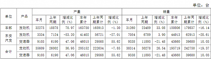 东安动力:前5月发动机销量合计19.57万台,同比下滑19.37%