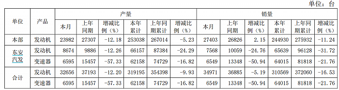 东安动力9月4日公告,公司前8月发动机销量31.06万台,同比减少16.53%;前8月变速器销量6.4万台,同比减少21.76%。