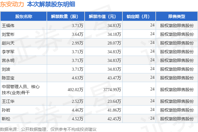 根据市场公开信息整理,东安动力(600178)于4月22日将有439.62万股限售股份解禁上市,为公司股权激励限售股份,占公司总股本0.92%。本次解禁后,公司还有901.69万股限售股份,占总股本1.9%。具体如下图所示: