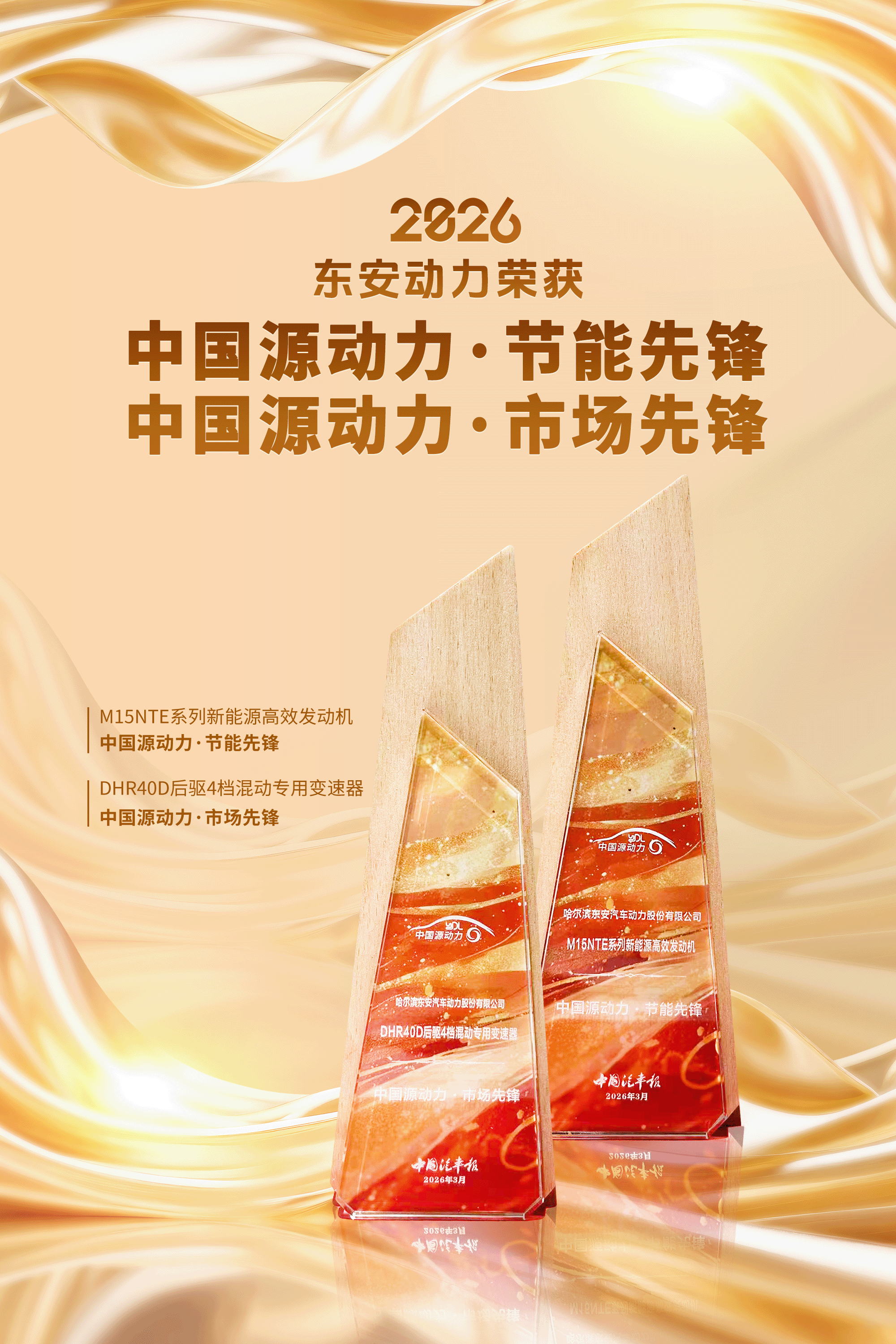 同时,东安动力参评的1.5T/DHT系列产品,凭借在新能源市场的标杆性表现、技术突破与市场认可度,一举包揽中国源动力“节能先锋”与“市场先锋”两项殊荣。