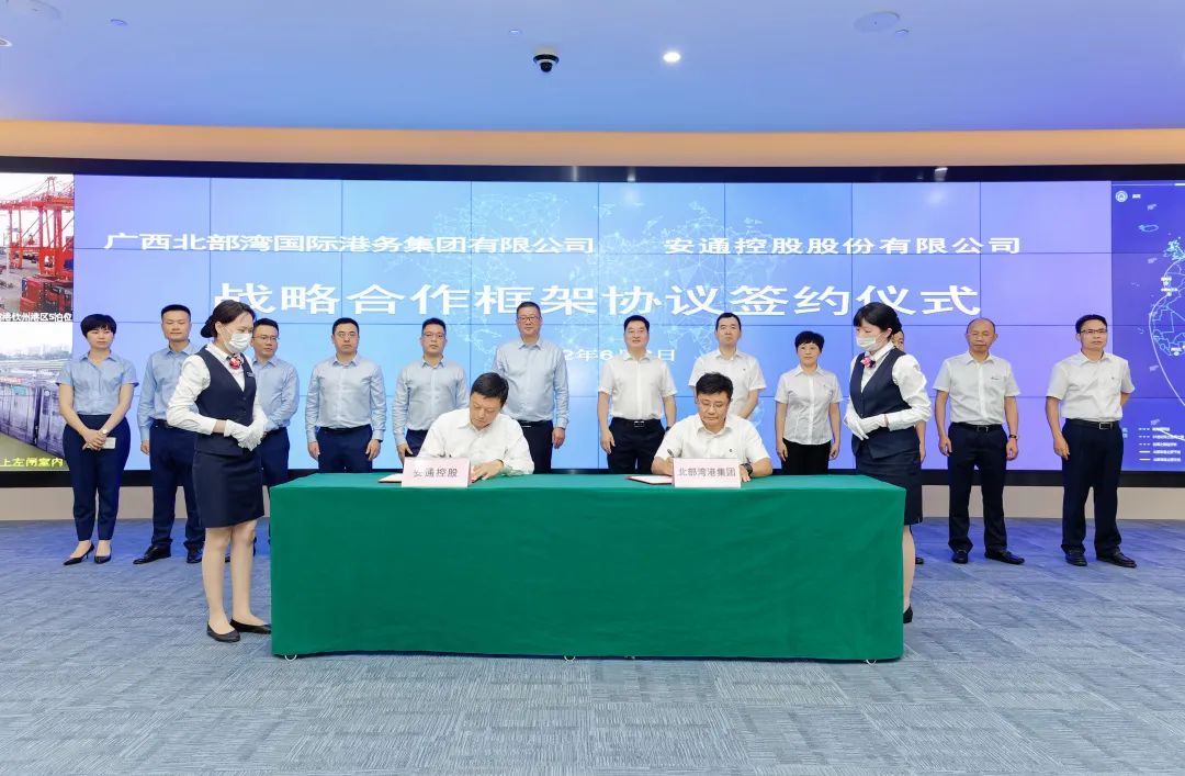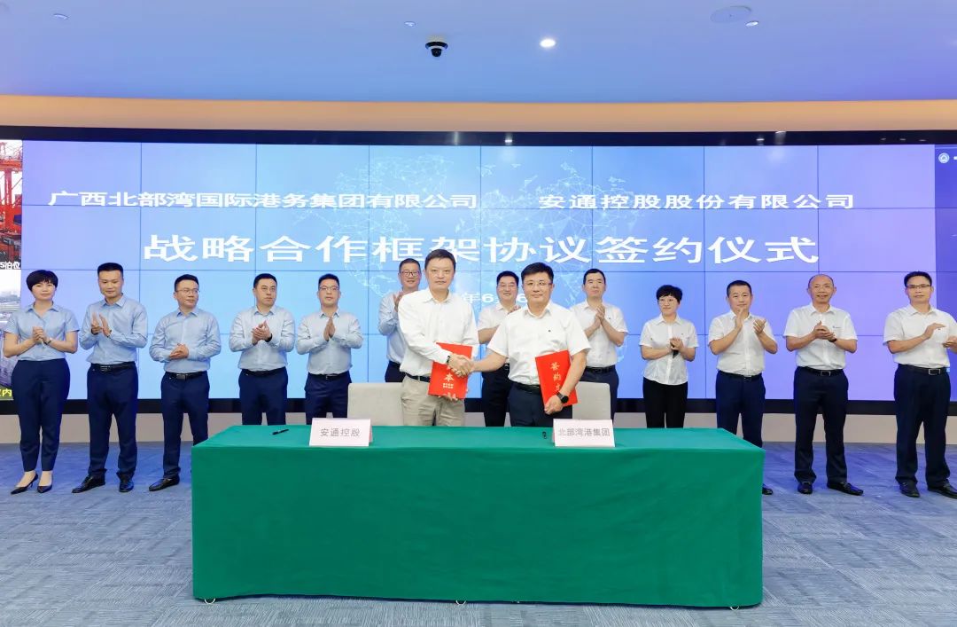6月6日下午,广西北部湾国际港务集团有限公司与安通控股股份有限公司在南宁签署战略合作框架协议,双方将在港航合作、西部陆海新通道建设、港口物流综合服务等领域展开深度合作。