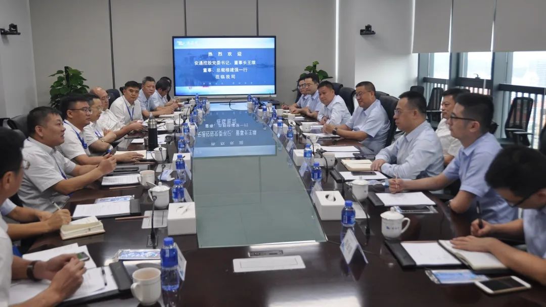 8月3日,珠海港集团党委书记、董事长欧辉生会见来访的安通控股党委书记、董事长王维,董事总裁楼建强一行,双方就进一步加强交流对接、深化航线合作展开座谈。