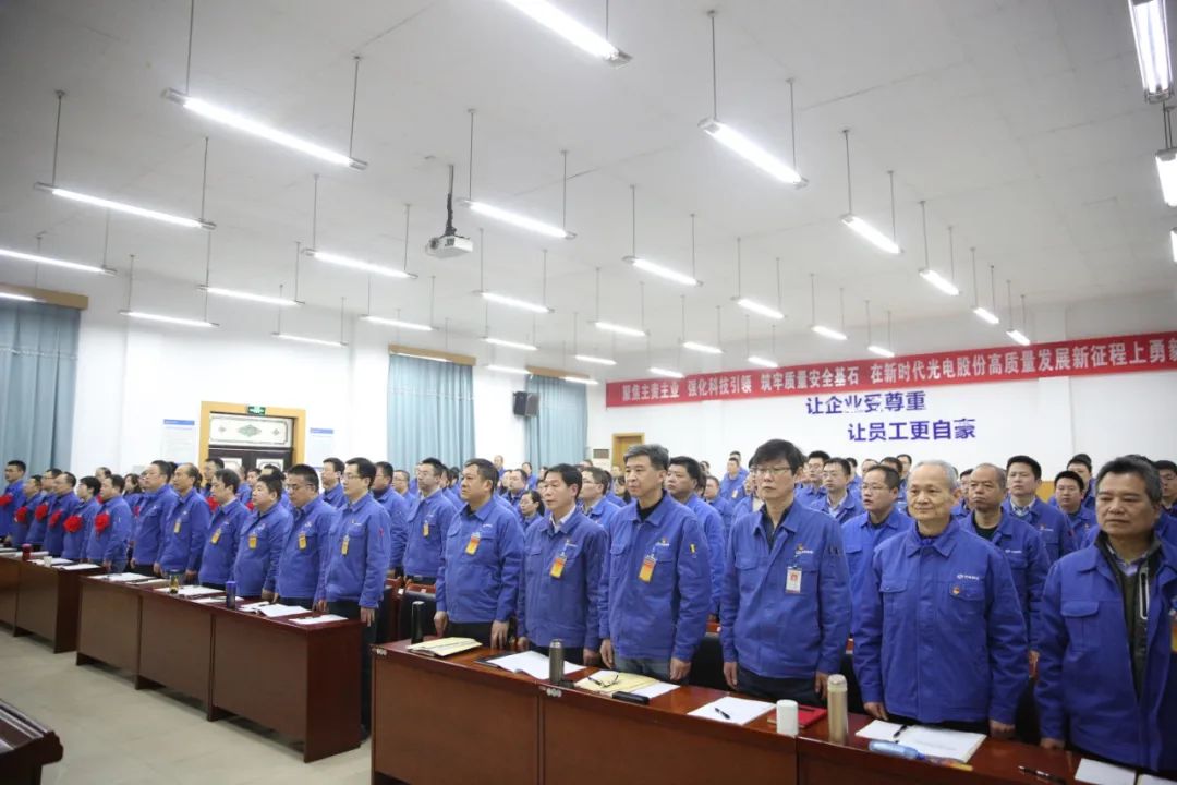 大会在庄严的《国歌》声中开幕。总经理陈良作了题为《聚焦主责主业强化科技引领筑牢质量安全基石在新时代光电股份高质量发展新征程上勇毅前行》的经营工作报告。