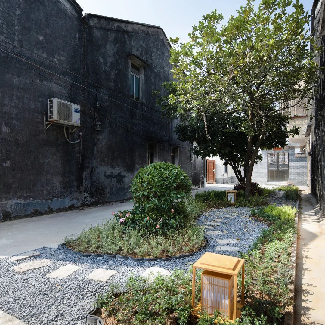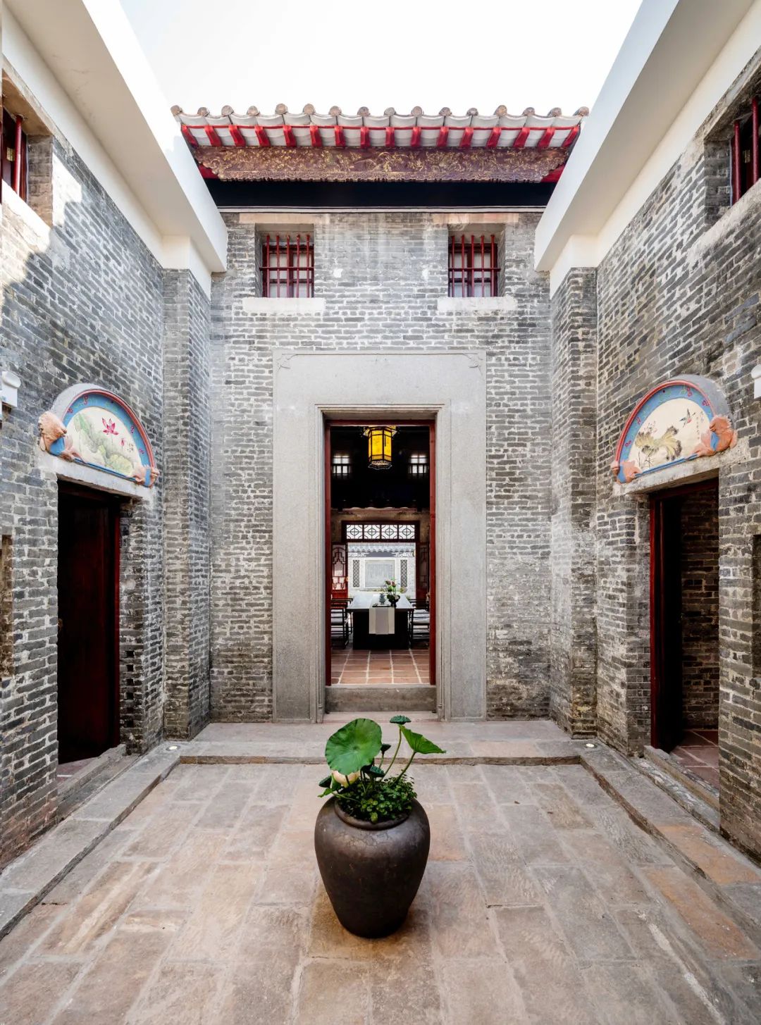 改造选取了具有近百年历史的三间两廊青砖屋,遵循“修旧如旧,活化提升”原则,对屋面、墙体、门窗等细节进行精细修复,并在不破坏原有风貌的前提下引入商业功能,优化室内空间,使其既符合传统岭南建筑特色,又满足现代住宿体验需求。