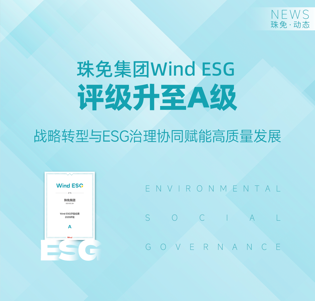 近日,国内权威ESG评级机构Wind(万得)发布最新评级报告,珠海珠免集团股份有限公司(简称“珠免集团”,股票代码:600185.SH)ESG评级由BBB升至A级。这一跨越式提升,得益于公司近年来聚焦“大消费”主航道、深化可持续治理体系的系列举措。随着公司战略转型持续推进,珠免集团在环境(E)、社会(S)及治理(G)维度全面发力,ESG治理成效不断显现。